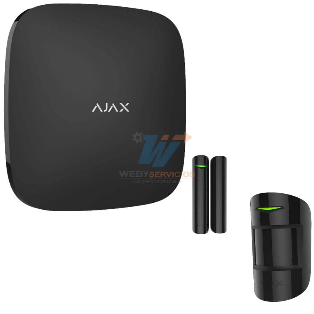El kit de inicio AJAX en color negro o Blanco es un Panel de alarma Hub2Plus con posibilidad de conexión Ethernet, WiFi y LTE,3g y 2G que puede ser controlado por medio de la APP “AJAX PRO” compatible con iOS y Android. Este paquete cuenta con 1 sensor de movimiento y 1 detector de puerta o ventana con entrada auxiliar el panel todos en color blanco o negro.