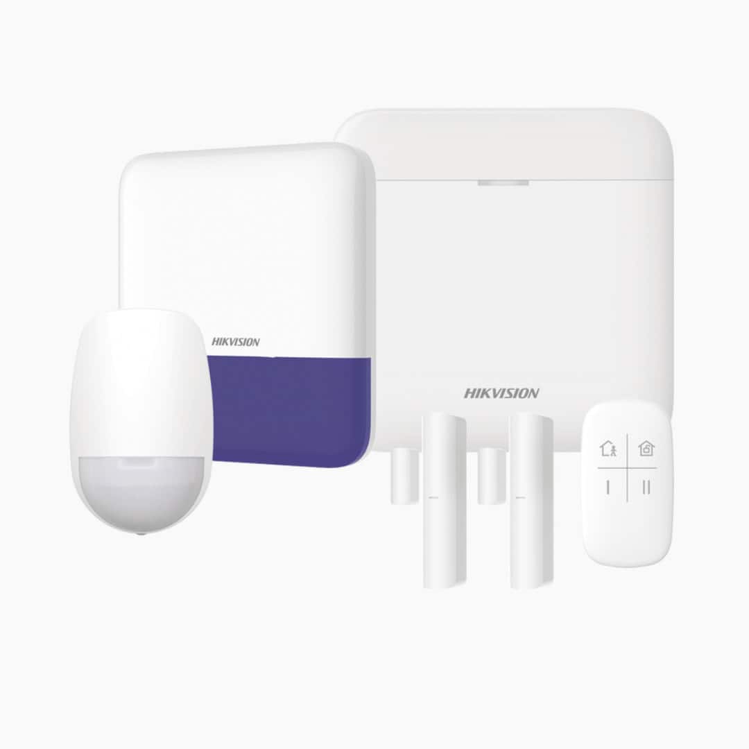 El kit AXPRO-KIT-GSM es una gama de productos AX PRO de hikvision que cuneta con un KIT de Alarma AX PRO con conectividad GSM (3G/4G) adicional a su conectividad wifi. Este paquete incluye: 1 Hub con bateria de respaldo, 1 Sensores PIR , 2 Contactos Magnéticos, 1 Control Remoto y 1 Sirena Inalambrica Exterior.