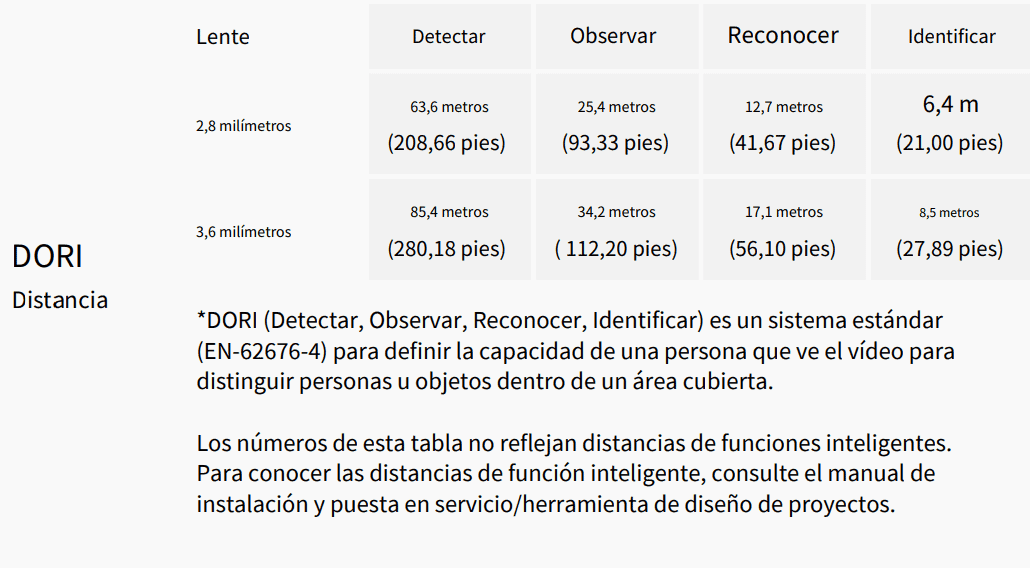 - Consumo de energía: 2 W; 2,9 W (PoE); Máx.: 4 W, 5,3 W (PoE) (H.265 + inteligencia encendida+ DWDR + intensidad del iluminador)