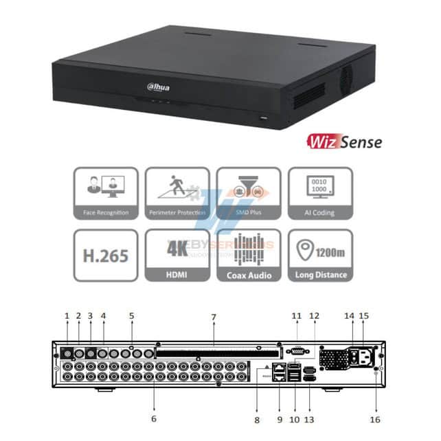 El grabador DAHUA DH-XVR5432L-4KL-I3 es un DVR de 32 Canales que soporta hasta 4k en tecnología análoga en todos sus canales. Este grabador cuenta con WizSense y está diseñado para la implementación de grabación de duración media o larga ya que cuenta con compresión H.265+ pero lo mas importante hasta 4 slots de disco duro en un solo equipo con soporte de 10TB por disco duro pudiendo tener hasta 40TB de almacenamiento lo cual es requerido si estarás implementando cámaras 4K en análogo. Este grabador tiene 6 Canales de Reconocimiento Facial, Codificación IA, 6 canales de IVS, 32 de SMD y en tecnología IP soporta hasta 12MP de calidad.