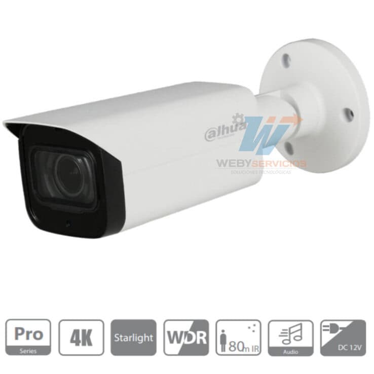 La cámara DAHUA HAC-HFW2802TU-Z-A es una cámara Bullet calidad 4k con tecnología Starlight es una cámara de 8 Megapixeles con Lente Motorizado que va desde los 2.7 hasta los 13.5mm. Esta cámara tiene un sensor para detectar iluminación hasta en 0.005 Lux color, viene acompañada de compensación WDR Real 120dB y un potente infrarrojo para iluminar hasta 80 Mts. También encontrarás un Micrófono Integrado + 1 Canal de Audio y protección IP67.