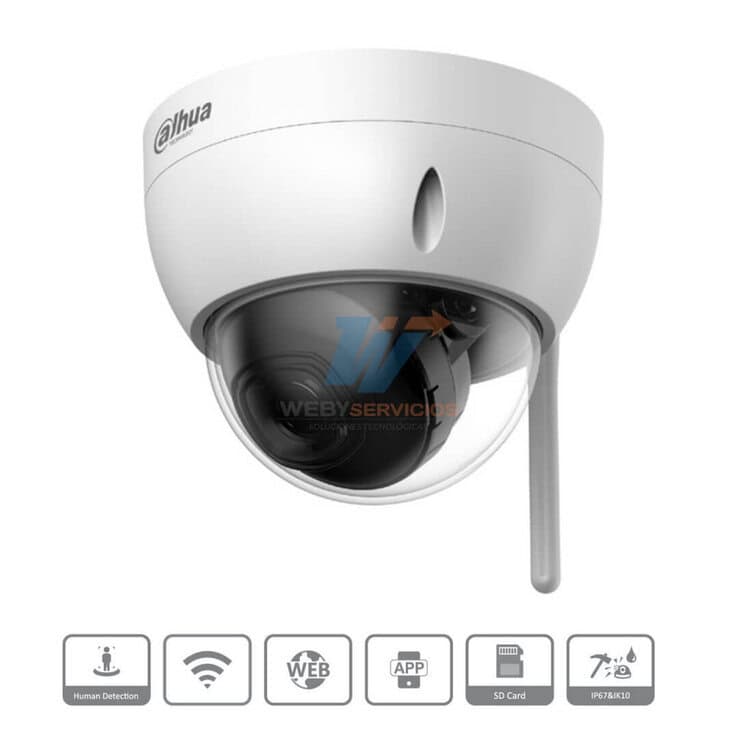 La cámara DAHUA IPC-HDBW1430DE-SW es una Cámara IP Domo Wifi de 4 Megapixeles con Lente de 2.8mm, Infrarrojo de 30 Mts, Ranura para MicroSD, protección IP67 e IK10 Antivandálica IK10, cuenta con DWDR, BLC, HLC. Esta cámara trabaja con fuente de alimentación 12v 1.5 amperes. Puede ser utilizada independientemente con memoria microsd o anexada a un grabador por medio de tecnología IP siempre y cuando el grabador te soporte 4MP.