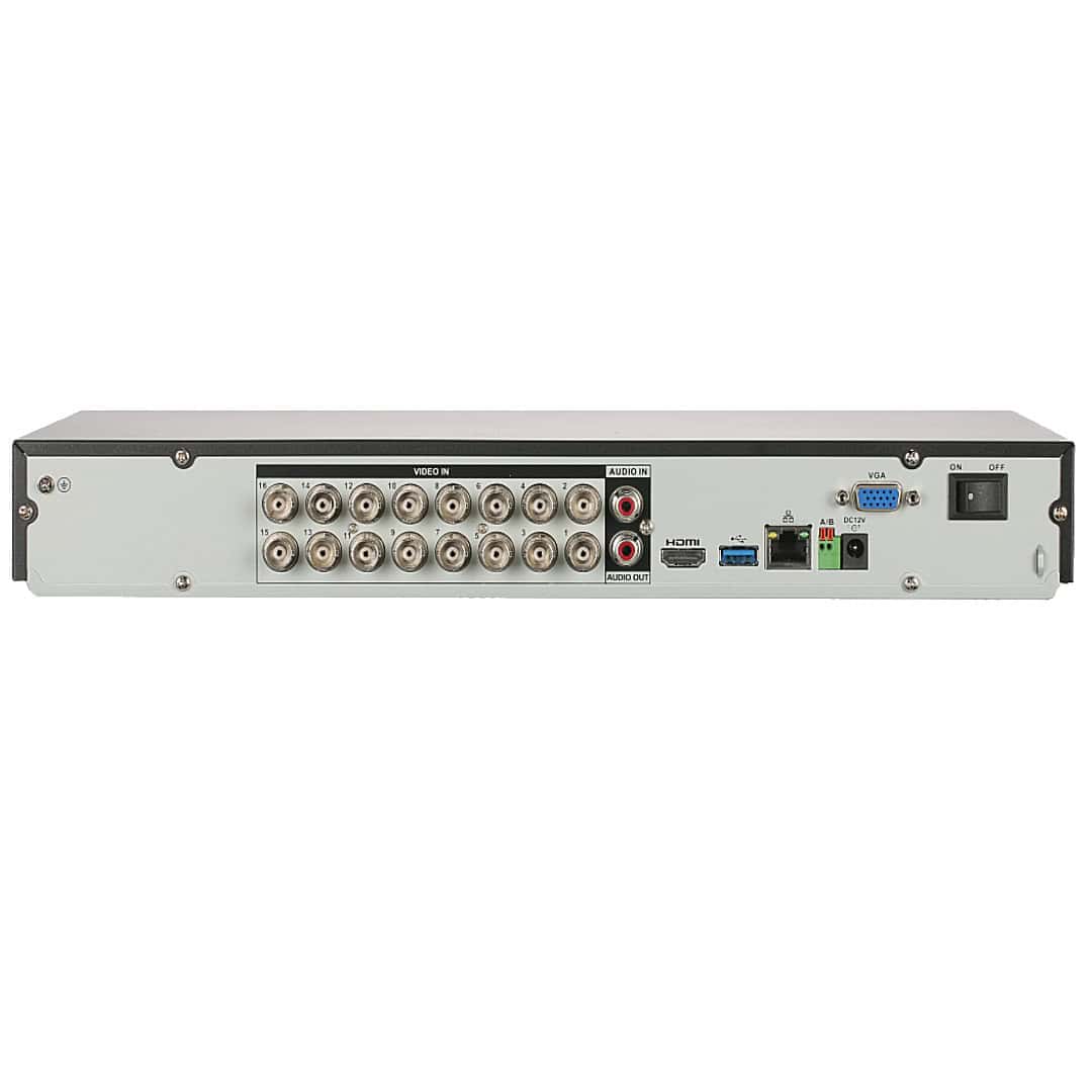 El grabador de video DAHUA XVR5216AN-4KL-I3 es un DVR de 16 Canales que soporta cámaras hasta 4k (8MP) con tecnología WizSense que incorpora chip IA. El XVR5216AN-46-i3 tiene compresión H.265+, soporte para 2 Bahías de Disco Duro, puedes conectar 16 Canales de video análogo + 16 canales IP así que puedes convertirlo en un NVR dahua para hacer un total de 32 canales IP. Este grabador tiene opciones de inteligencia artificial como 2 Canales de Reconocimiento Facial, SMD Plus, Codificación IA y Funciones IoT&POS. Las dos bahías de disco duro soportan hasta 32 tb en total. Encontrarás en el frontal un puerto USB 3.0 y en la parte trasera un puerto usb 2.0