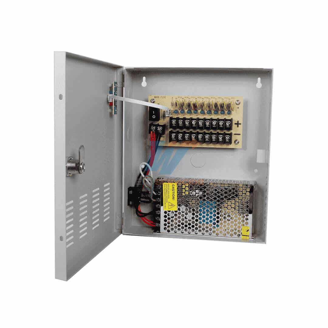 Una sencilla pero práctica fuente de poder SAXXON PSU1210D9 es una Fuente de Poder ideal para cámaras de de 12 vcd con consumo máximo de 10 Amperes. Te funciona hasta para 9 Camaras con 1.1 Amper por Canal y cuenta con protección contra Sobrecargas con Certificación UL