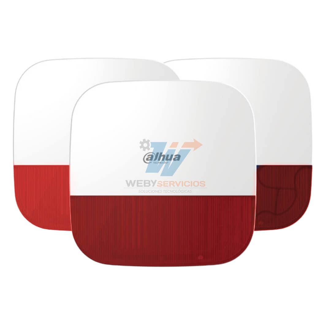 La DAHUA DHI-ARA13-W2 es una Sirena Inalámbrica para Exterior con Estrobo Rojo y emisión de alarma sonora hasta 110dB que cuenta con Múltiples sonidos de Alarma. Cuenta con protección IP65